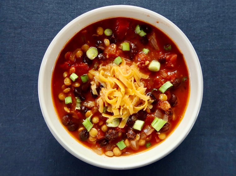 We enjoy this hearty and versatile stew on its own, over pasta, or alongside cornbread or another bready starch. The fillings of lentils, beans, and basic vegetables are loaded with protein and nutrients, while the plethora of spices makes for a flavorful, well-seasoned dish.